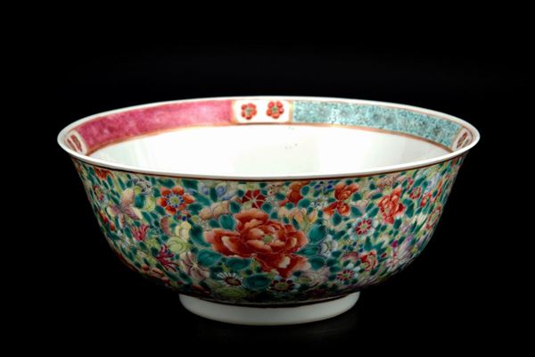 COPPIA DI BOWL IN PORCELLANA MILLEFIORI CON DRAGHI, Cina, XIX secolo