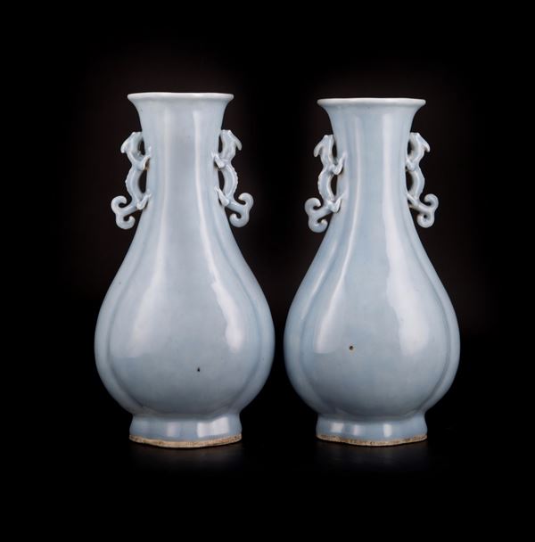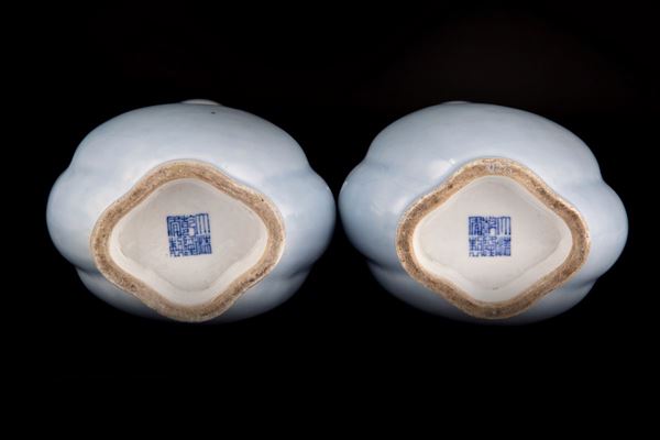 COPPIA DI VASI IN PORCELLANA LOBATA CLAIR-DE-LUNE, Cina, marcati e probabilmente del periodo Qianlong