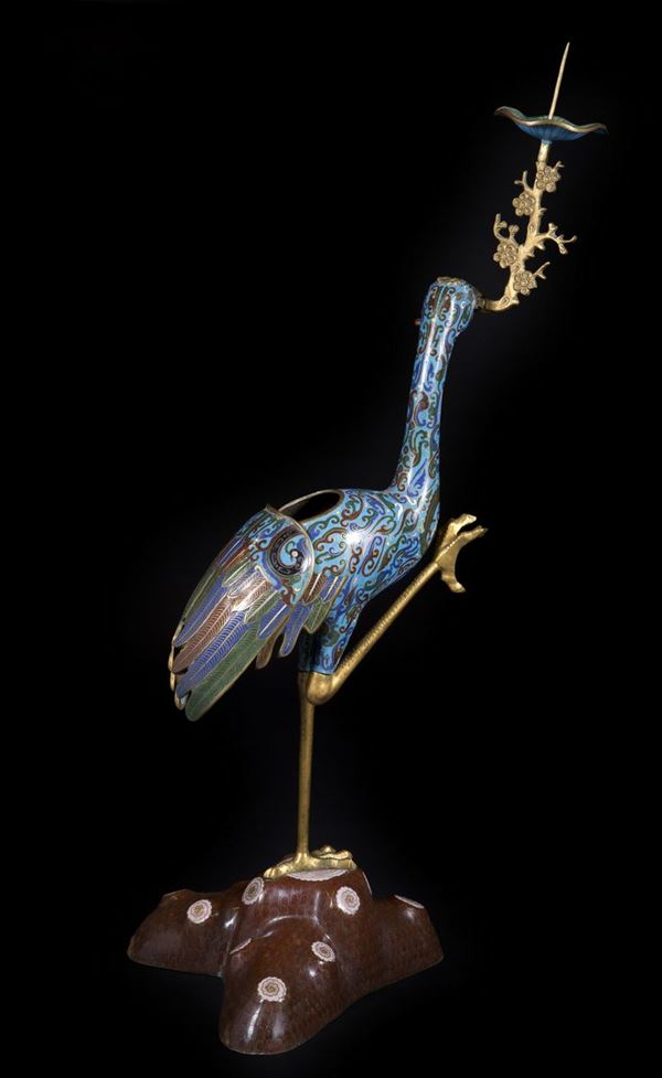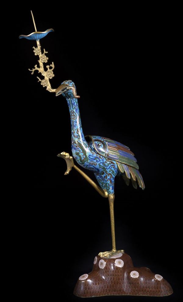 DUE CANDELABRI IN CLOISONNÉ, Cina, fine XIX secolo