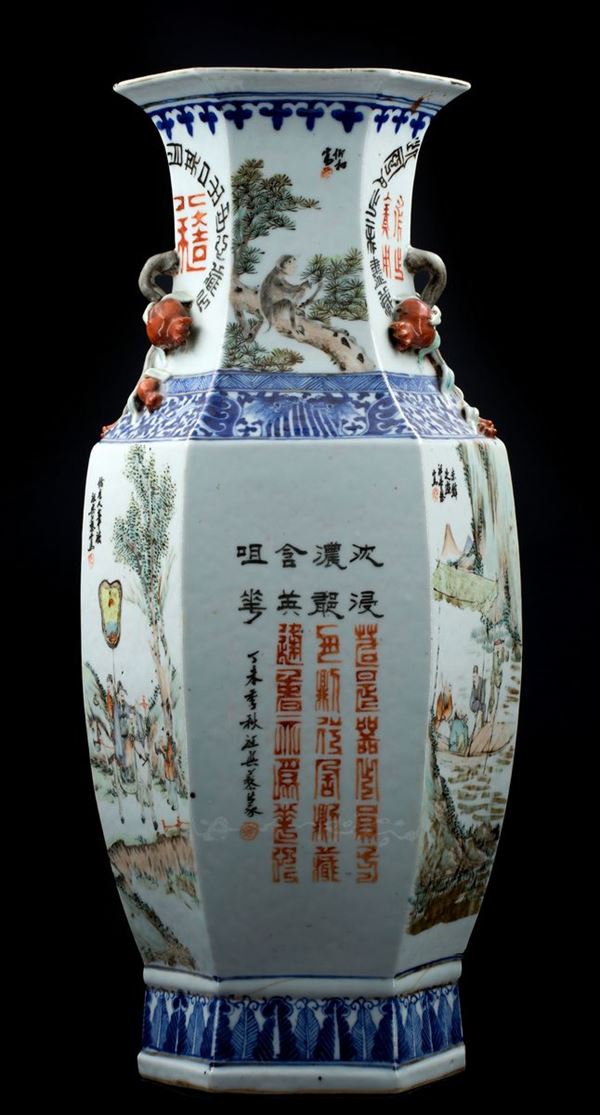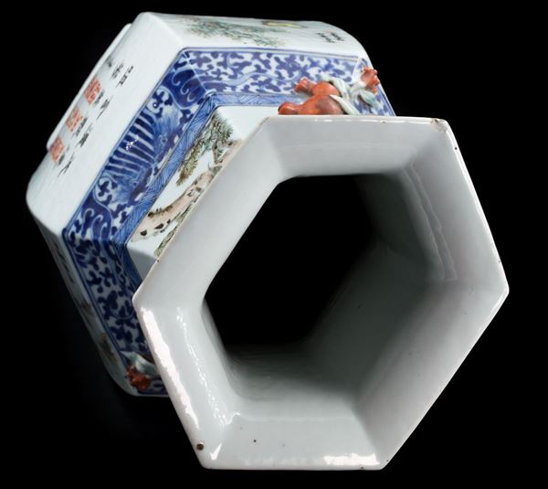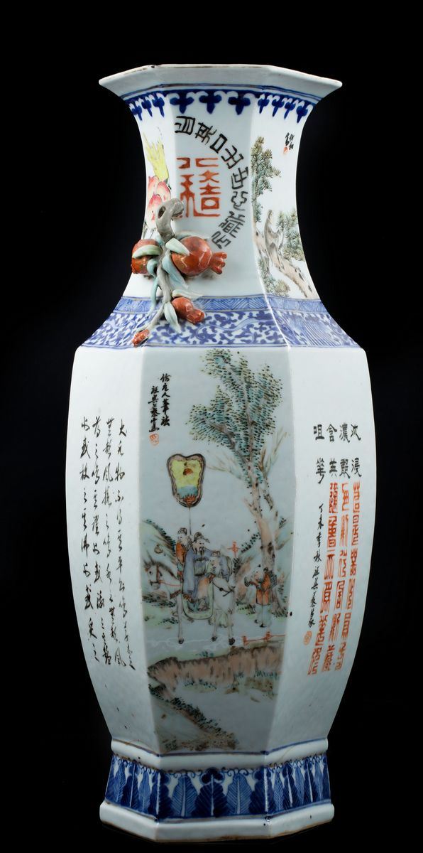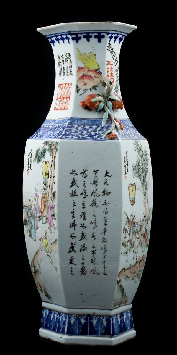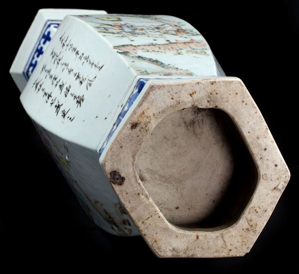 GRANDE VASO QIANJIANG ESAGONALE IN PORCELLANA, Cina, inizio XX secolo