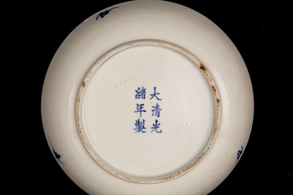PIATTO IN PORCELLANA BIANCO E BLU, Cina, marchio e periodo Guangxu (1975-1908)