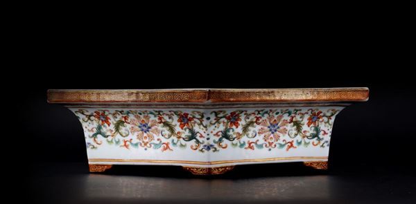 RARA LAMPADA DA PALAZZO IN PORCELLANA YANGCAI PROBABILMENTE IMPERIALE, Cina, dinastia Qing, periodo Qianlong (1735-1796)
