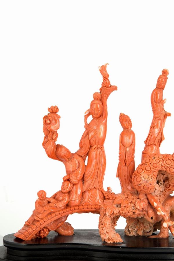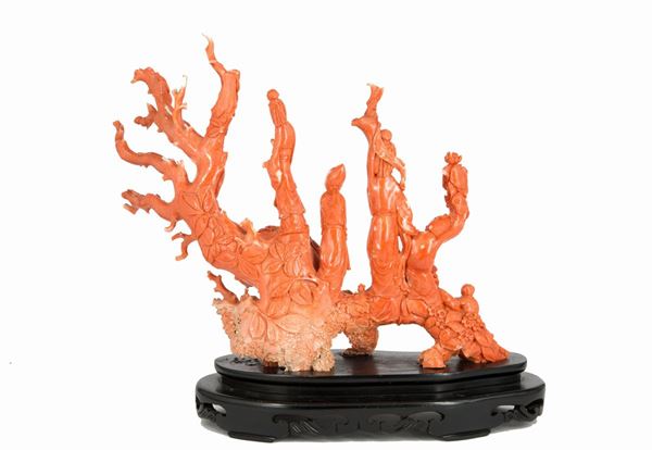 STATUA IN CORALLO MOMO CERASUOLO RAMIFICATA, Cina, inizio XX secolo