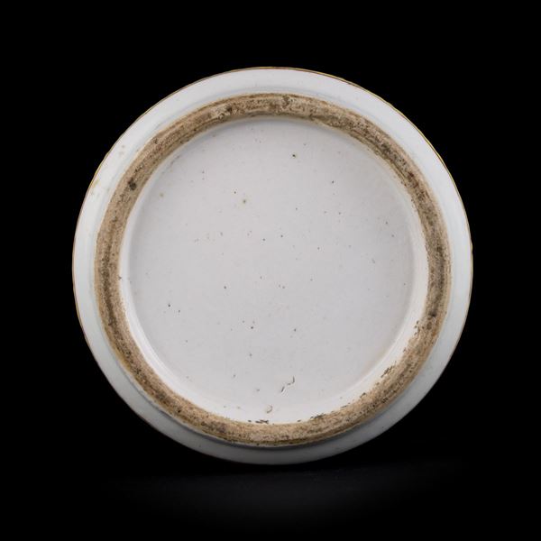 Di forma cilindrica, è dipinto su fondo turchese con due draghi in grisaglia tra fiori bianchi; la scena è racchiusa sia sopra che sotto da due fasce rosa e gialle con motivi vegetali.