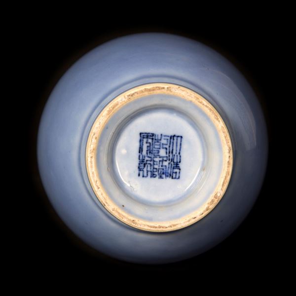 VASO IN PORCELLANA MONOCROMA BLU LAVANDA, Cina, dinastia Qing, fine XIX secolo
