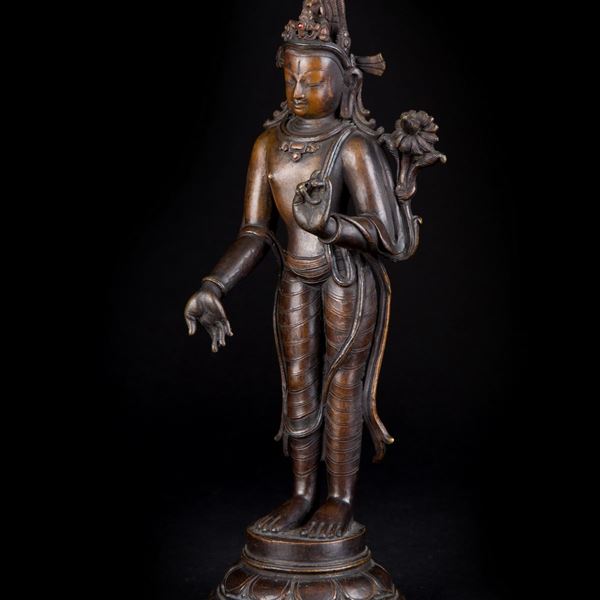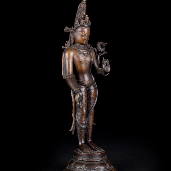 BODHISATTVA PADMAPANI IN BRONZO, Nepal, XVIII secolo