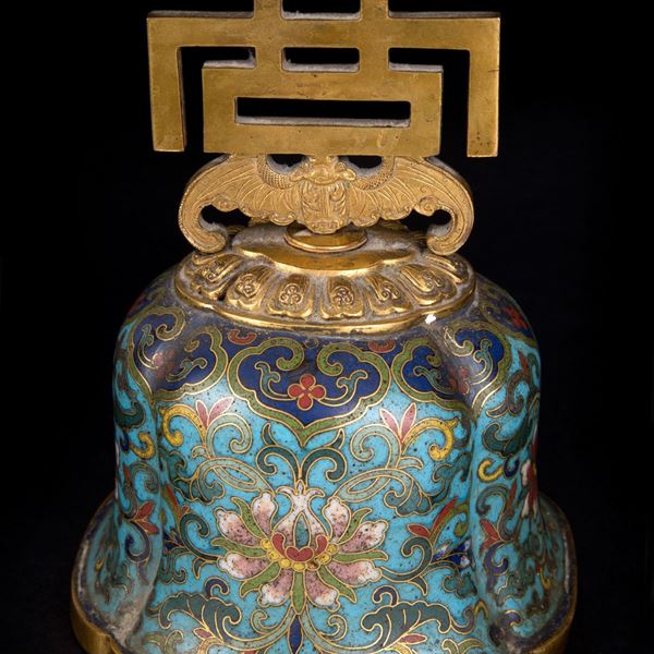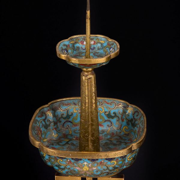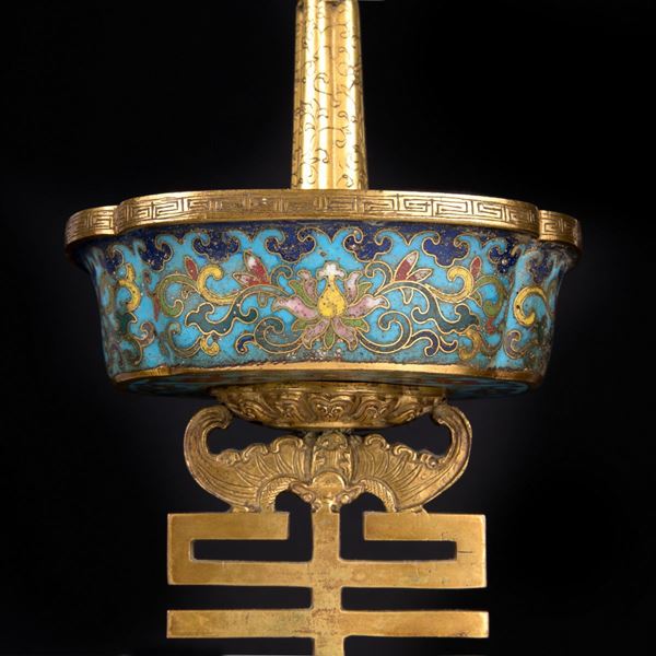 CANDELIERE IN CLOISONNÉ E BRONZO DORATO, Cina, dinastia Qing, XVIII secolo