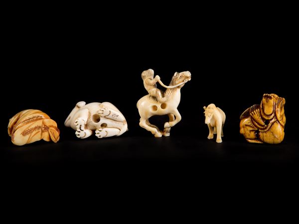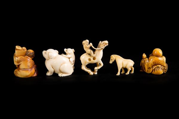 CINQUE NETSUKE IN AVORIO, Giappone, periodo Meiji (1868-1912)