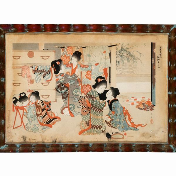 CINQUE WOODBLOCK PRINT, Giappone, XIX secolo