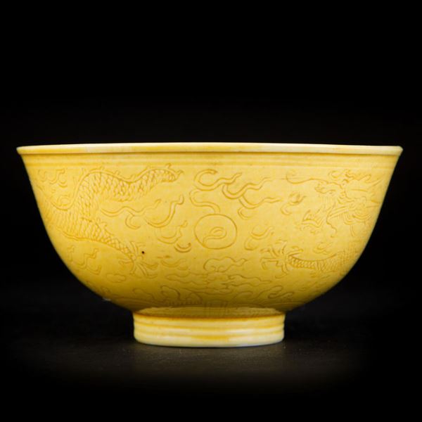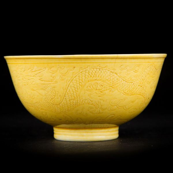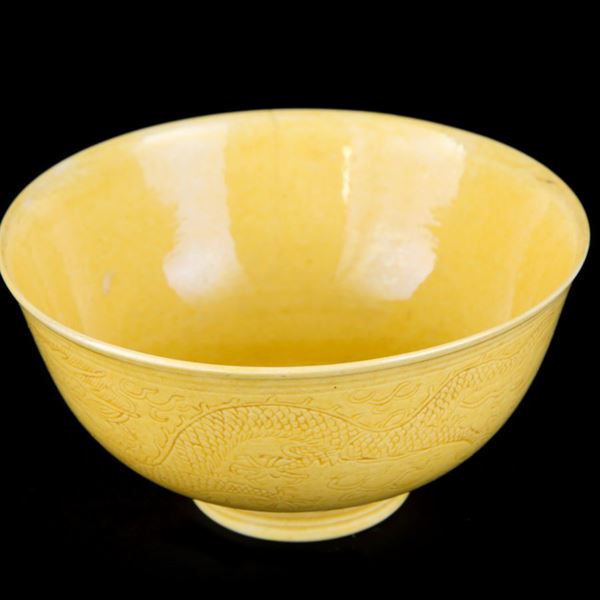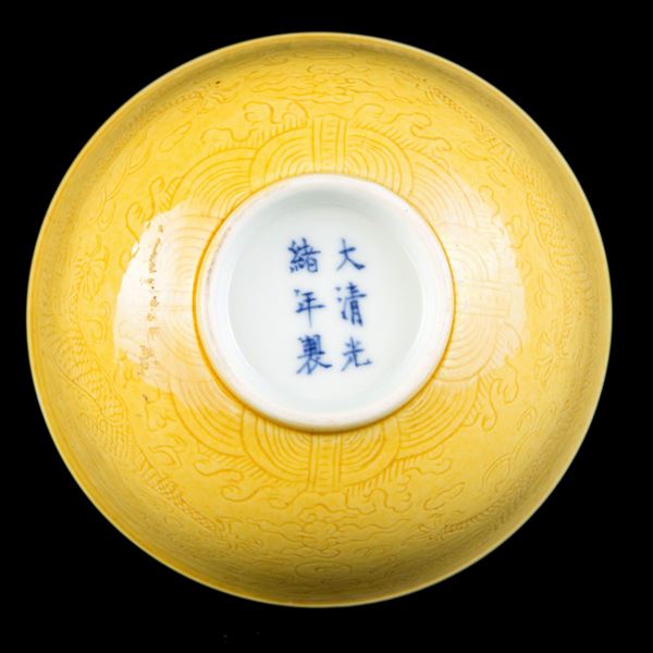 COPPA IN PORCELLANA A FONDO GIALLO, Cina, marchio e periodo Guangxu (1875-1908)