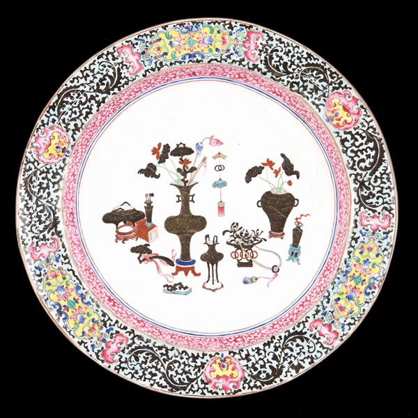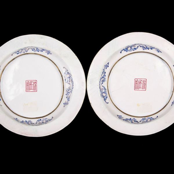 COPPIA DI PIATTI IN RAME SMALTATO, Cina, dinastia Qing, XVIII secolo