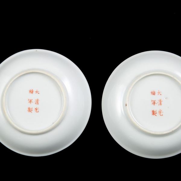 COPPIA DI PIATTINI IN PORCELLANA FAMIGLIA ROSA, Cina, Repubblica di Cina (1912-1949)