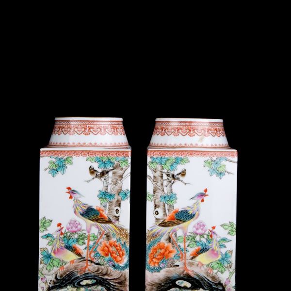 COPPIA DI VASI IN PORCELLANA, Cina, XX secolo