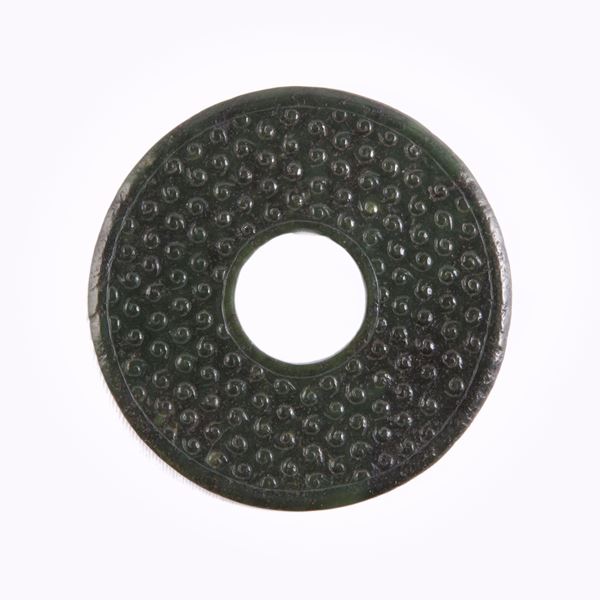 DISCO ARCAISTICO IN GIADA VERDE, Cina, dinastia Qing (1644-1912)