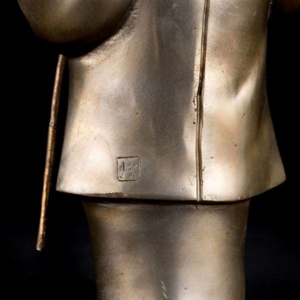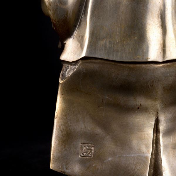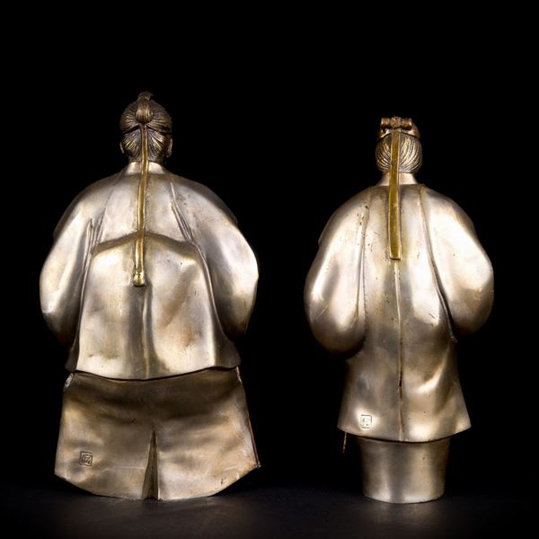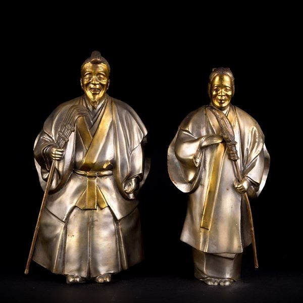 DUE FIGURE IN METALLO DORATO, Giappone, periodo Meiji (1868-1912)