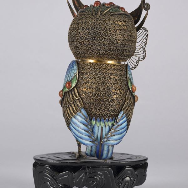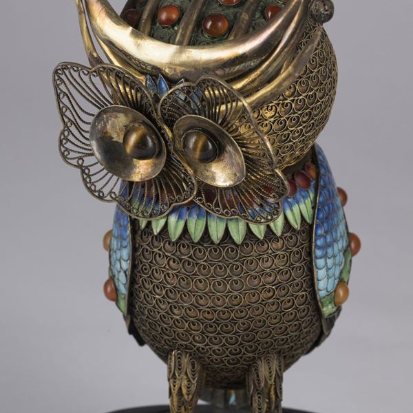 FIGURA DI GUFO IN FILIGRANA D'ARGENTO, Cina, XX SECOLO