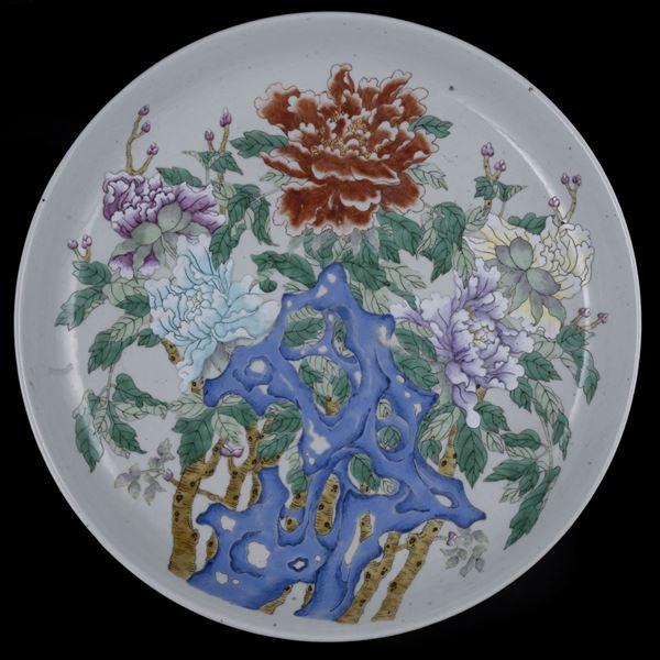GRANDE PIATTO IN PORCELLANA FAMIGLIA ROSA, Cina, dinastia Qing, fine XIX secolo