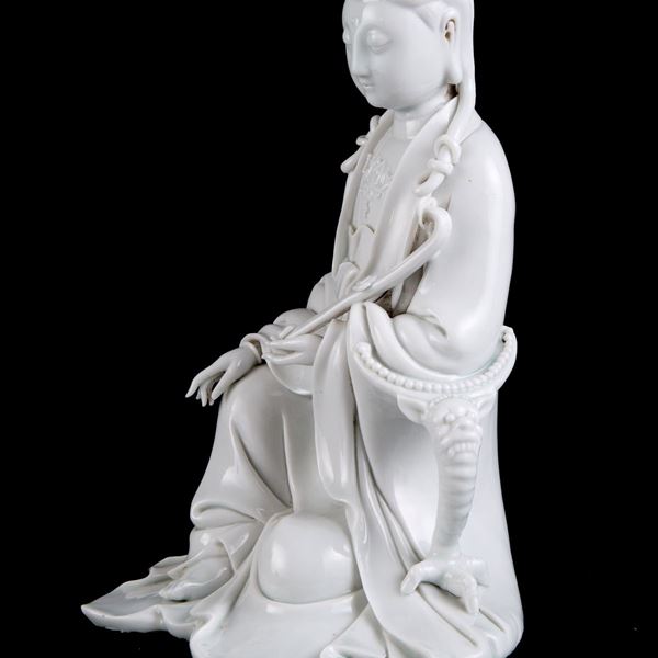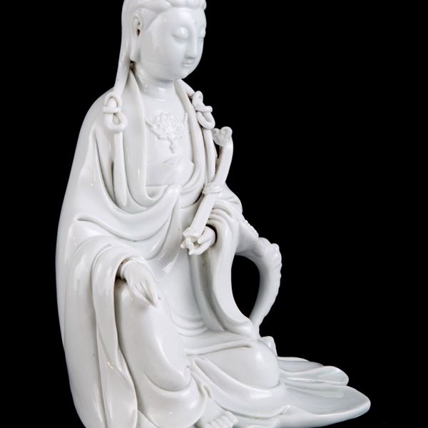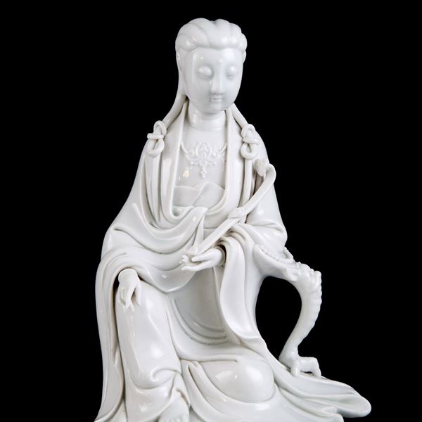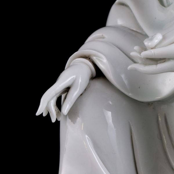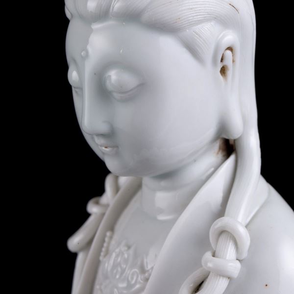 GUANYIN IN PORCELLANA DEHUA MARCATA, Cina, dinastia Qing (1644-1911)