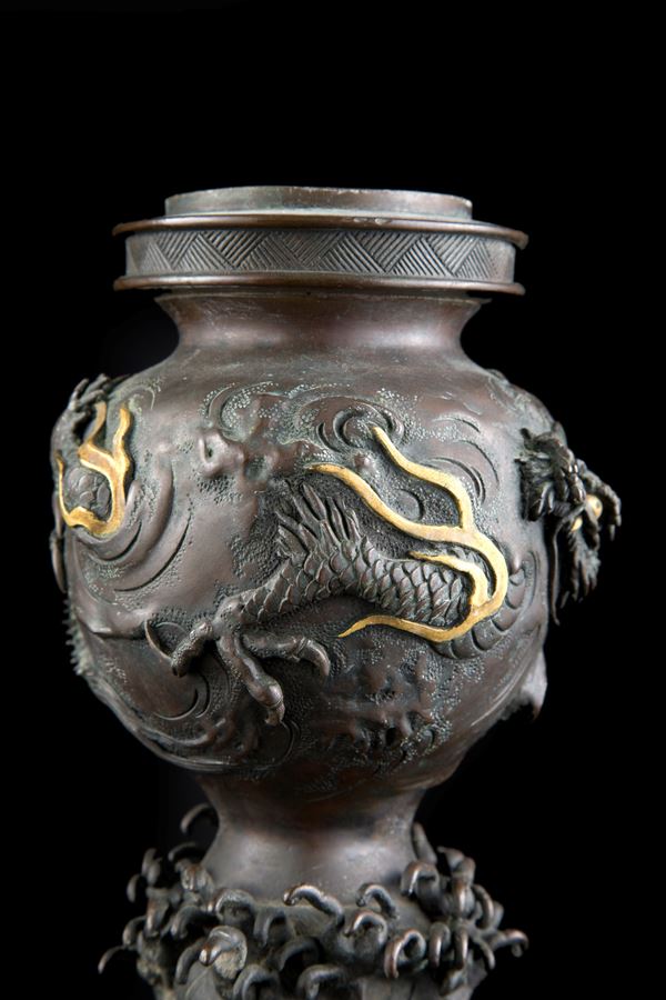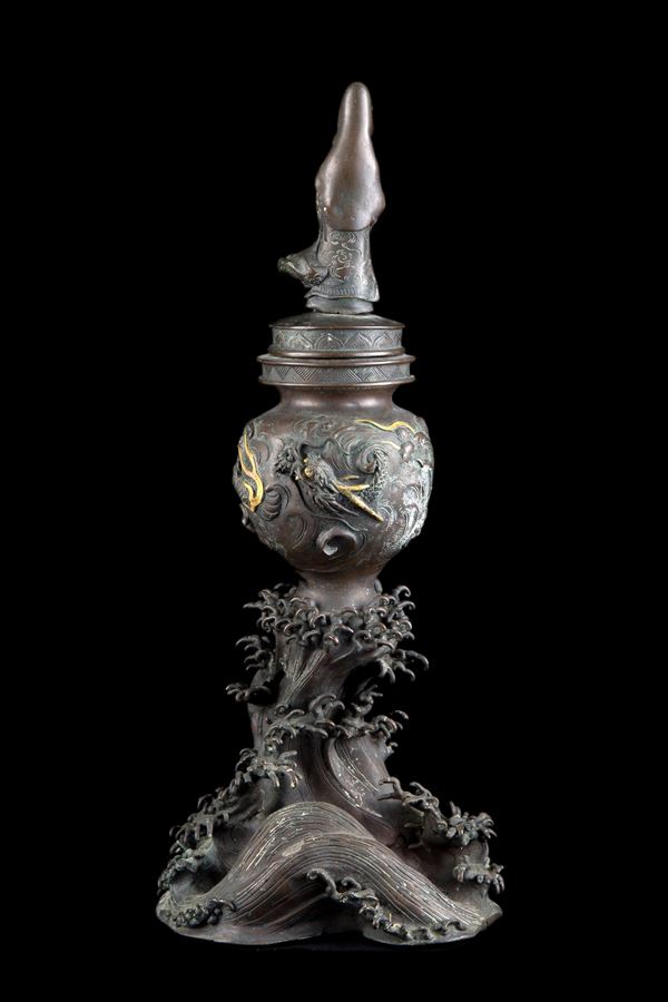 INCENSIERE IN BRONZO CON COPERCHIO, Giappone, periodo Meiji (1868-1912)