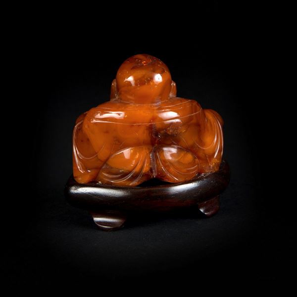 PICCOLO BUDDHA IN AMBRA, Cina, dinastia Qing, fine XIX secolo
