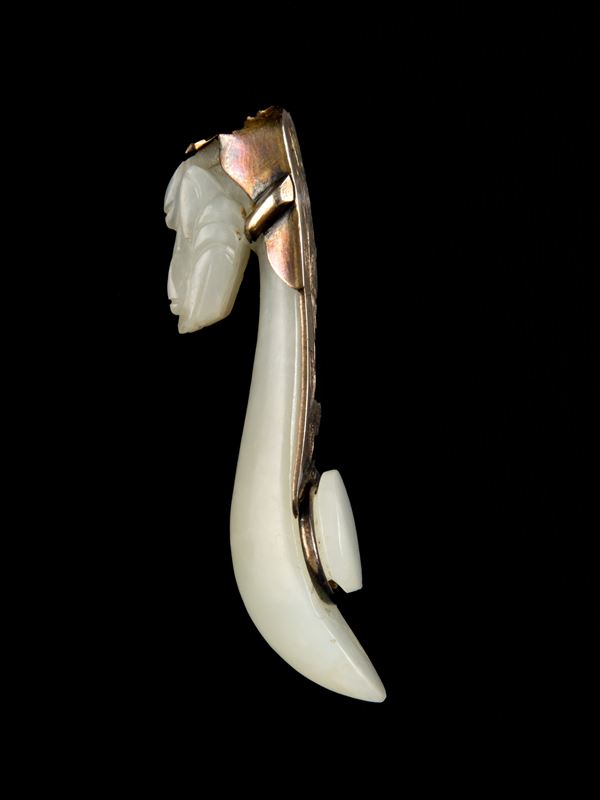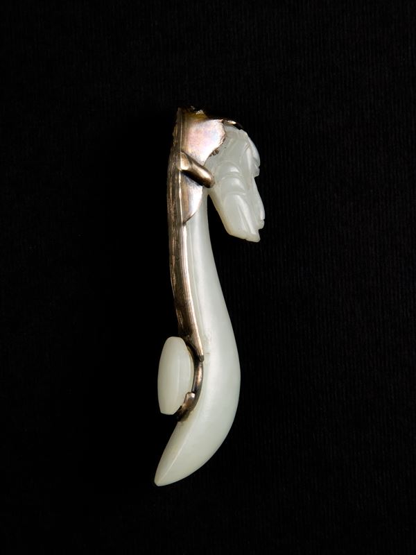 PICCOLO GANCIO PER CINTURA IN GIADA E ARGENTO, Cina, dinastia Qing (1644-1911)