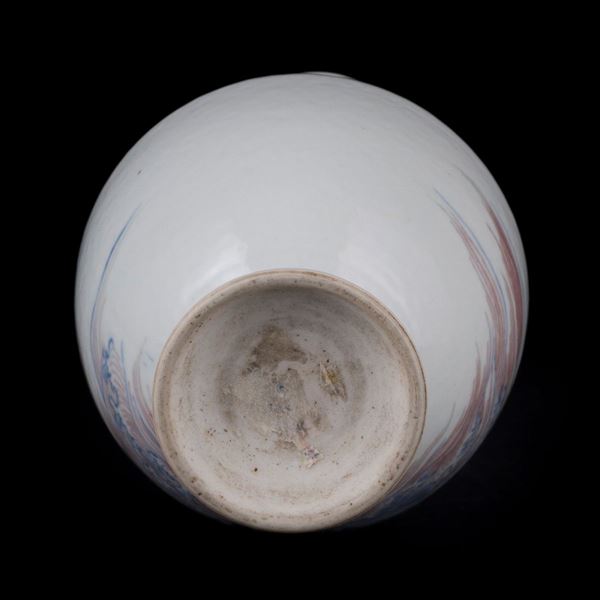 PICCOLO VASO IN PORCELLANA BLU E ROSSO SOTTO COPERTA, Cina, dinastia Qing, XVIII / XIX secolo