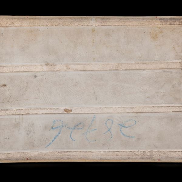 Raffigura un uccello tra fiori, reca iscrizioni.