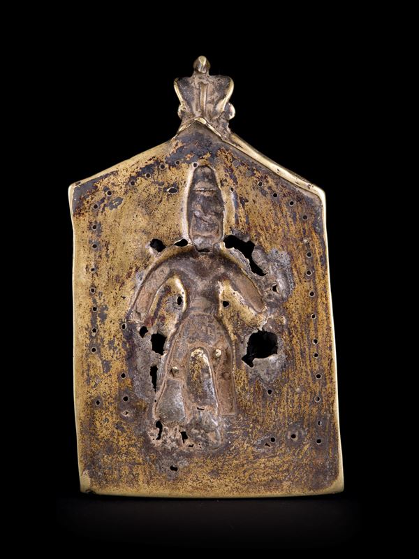 PLACCA VIRABHADRA IN OTTONE, India, stato del Karnataka, XIX secolo