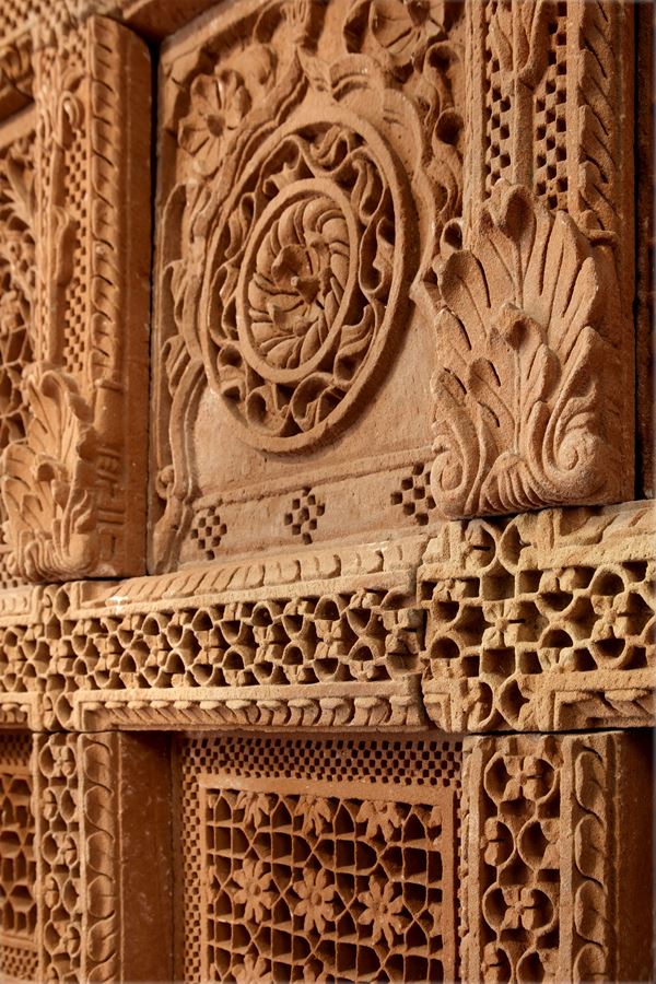 PORTALE INTAGLIATO MOGHUL IN ARENARIA ROSSA, India, seconda metà XVIII / inizio XIX secolo