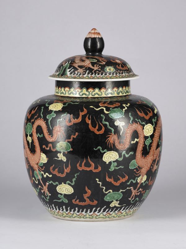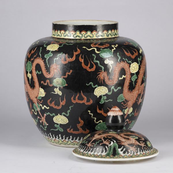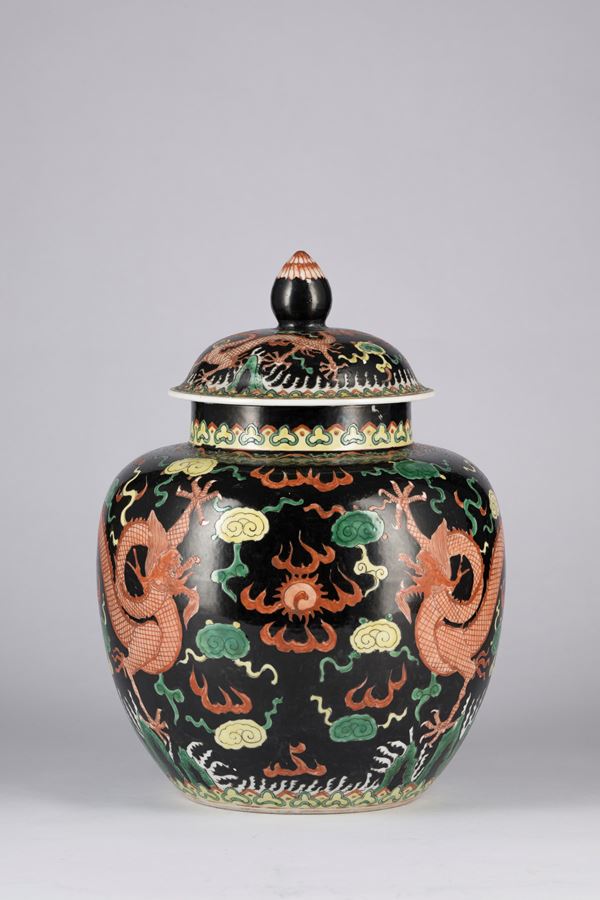 POTICHE FAMIGLIA NERA IN PORCELLANA, Cina, XIX / XX secolo