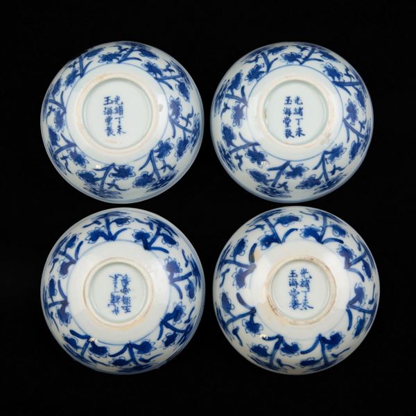 QUATTRO COPPETTE IN PORCELLANA BIANCO E BLU, Cina, marchio e periodo Guangxu (1875-1908)