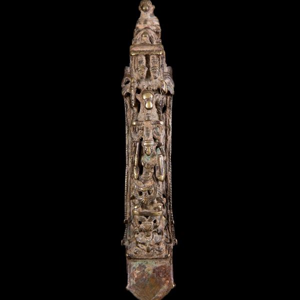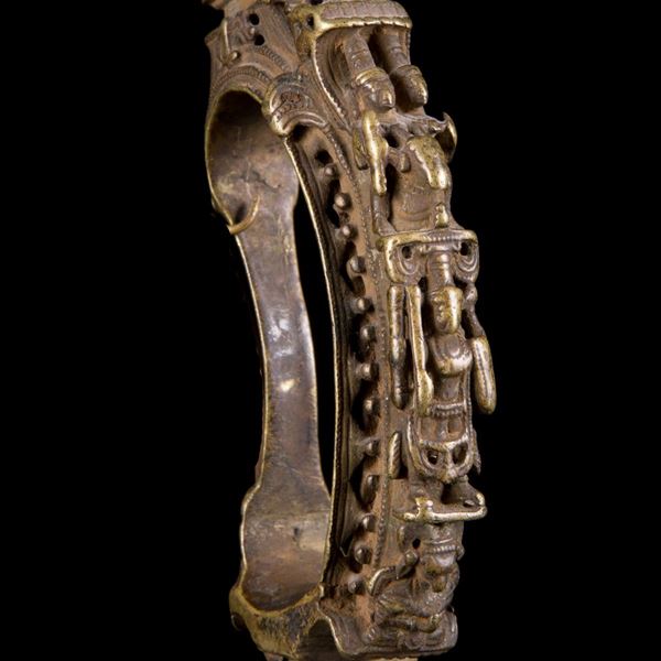 TRE MANICI DI PUGNALE IN BRONZO, India, stato del Karnataka, XIX secolo