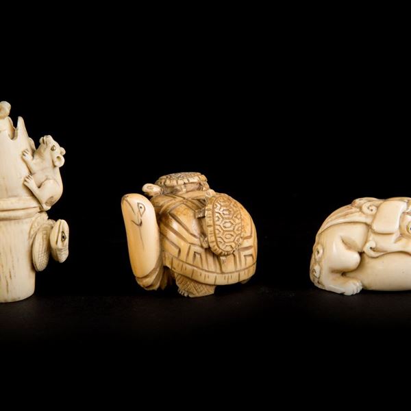 TRE NETSUKE IN AVORIO, Giappone, periodo Meiji (1868-1912)