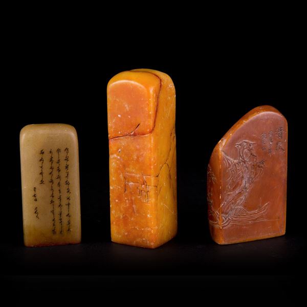 TRE SIGILLI IN PIETRA SAPONARIA, Cina, XX secolo