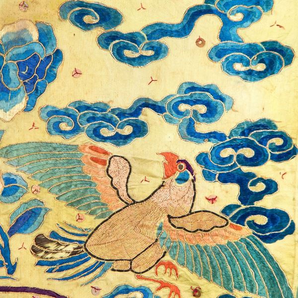 Il tessuto ricamato con fiori e uccelli e il vestito ben decorato.