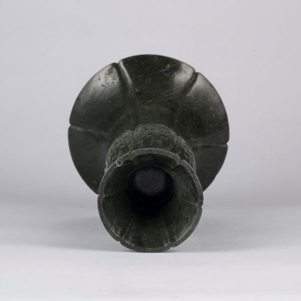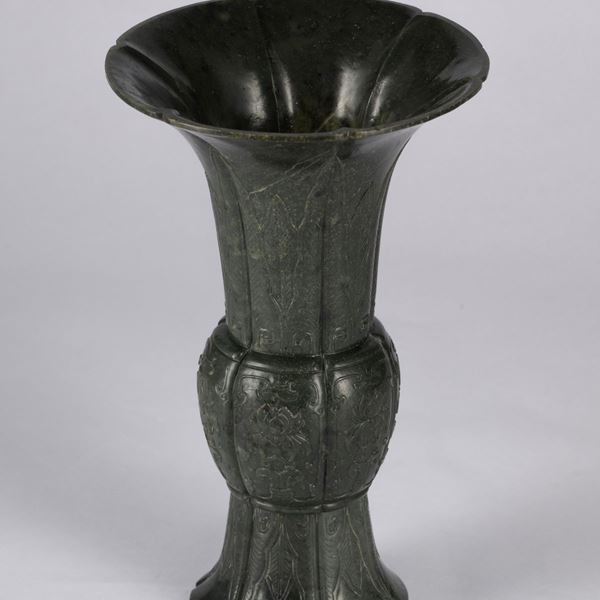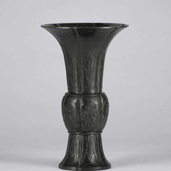 VASO GU INTAGLIATO IN GIADA SPINACIO, Cina, XVIII / XIX secolo