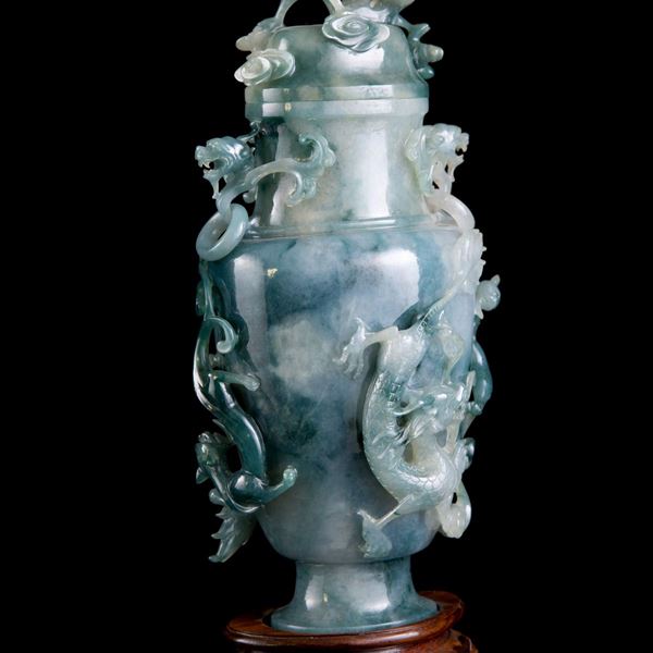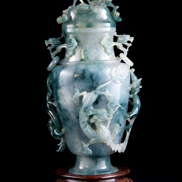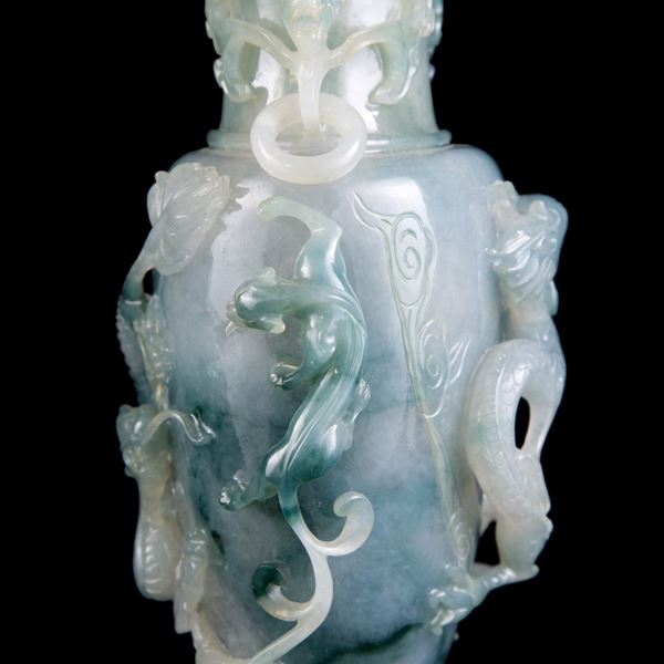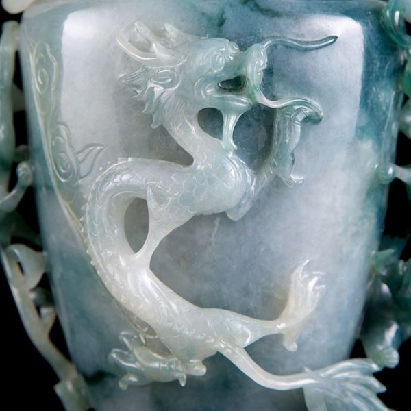 È scolpito con la forma di un vaso e coperchio su cui si arrampica un dragone.