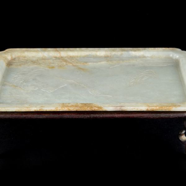 VASSOIO RETTANGOLARE IN GIADA CELADON, Cina, dinastia Ming, XVI / XVII secolo