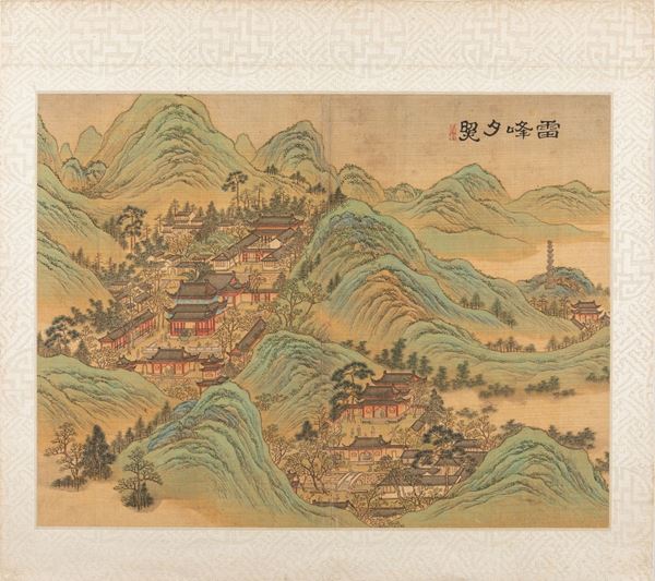 Raffiguranti quattro paesaggi lacustri con pagode e personaggi e una città tra le montagne. Due recano iscrizioni.