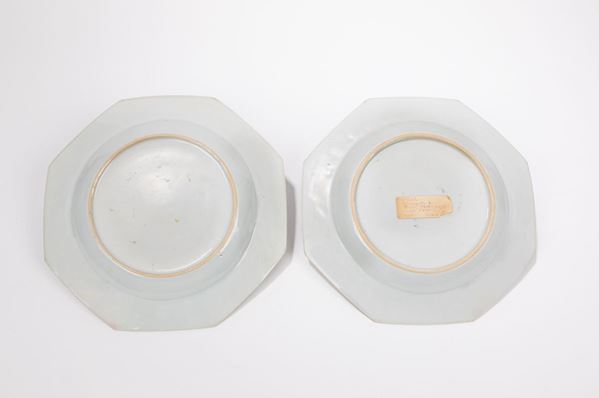 COPPIA DI PIATTI IN PORCELLANA FAMIGLIA ROSA, Cina, periodo Qianlong (1735-1796)