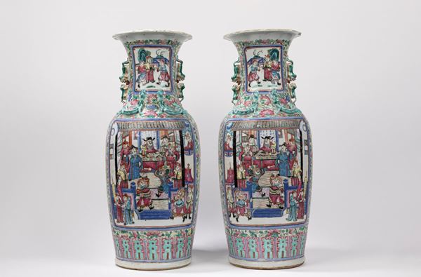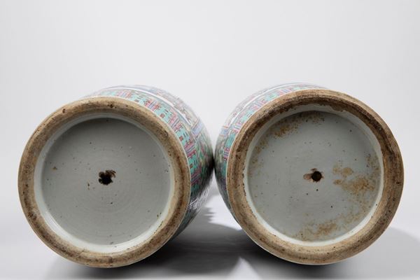 COPPIA DI VASI IN PORCELLANA CANTON, Cina, dinastia Qing, XIX secolo