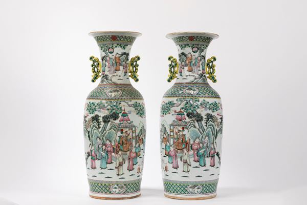 COPPIA DI VASI IN PORCELLANA FAMIGLIA ROSA, Cina, dinastia Qing, XIX secolo
