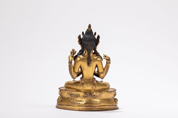 FIGURA IN BRONZO DORATO, Tibet, XVII / XVIII secolo