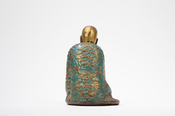 FIGURA IN RAME DORATO E SMALTATO, Cina, dinastia Qing (1644-1911)