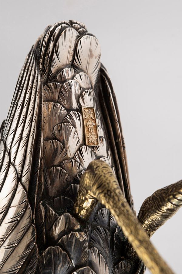 OKIMONO IN BRONZO ARGENTATO, Giappone, periodo Meiji (1868-1912)