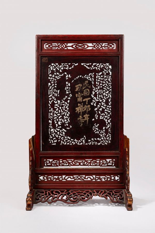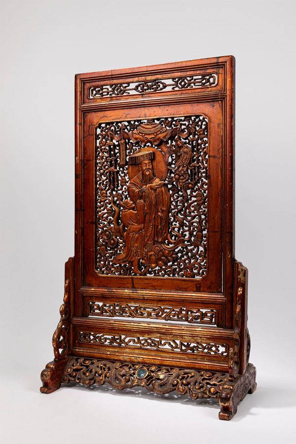 PARAVENTO DA TAVOLO IN LEGNO, Cina, XIX / XX secolo