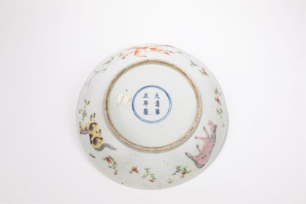 PIATTO IN PORCELLANA FAMIGLIA ROSA, Cina, dinastia Qing, XIX secolo