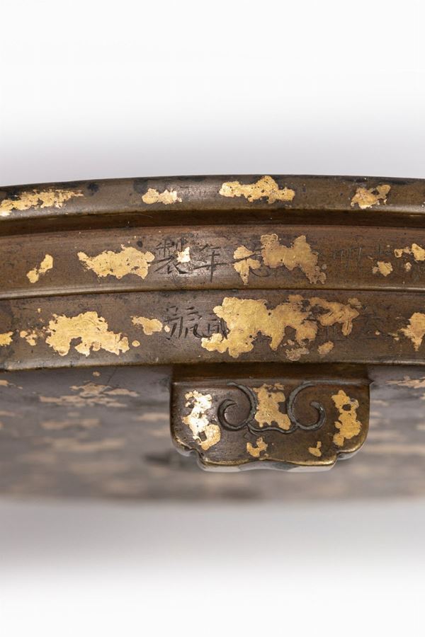 RARO BRUCIA INCENSO IN BRONZO CON SPLASH IN ORO, Cina, XVII / XVIII secolo