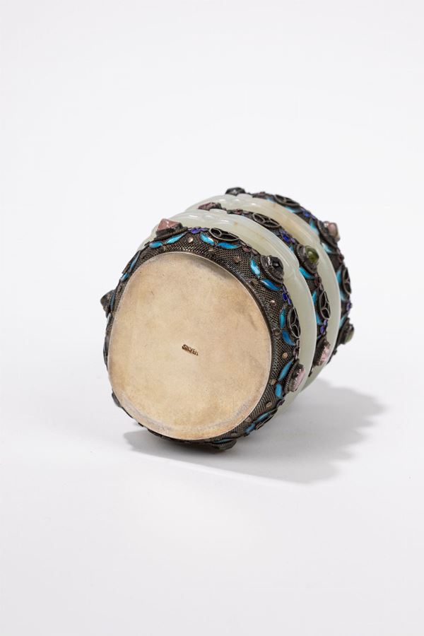 SCATOLA IN ARGENTO E GIADA, Cina, dinastia Qing, XIX secolo