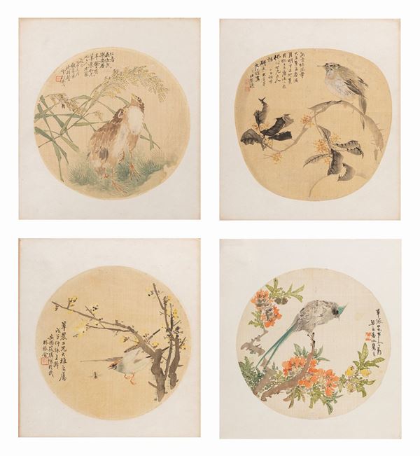 SEI DIPINTI SU SETA E DUE SU CARTA, Cina, dinastia Qing (1644-1911)